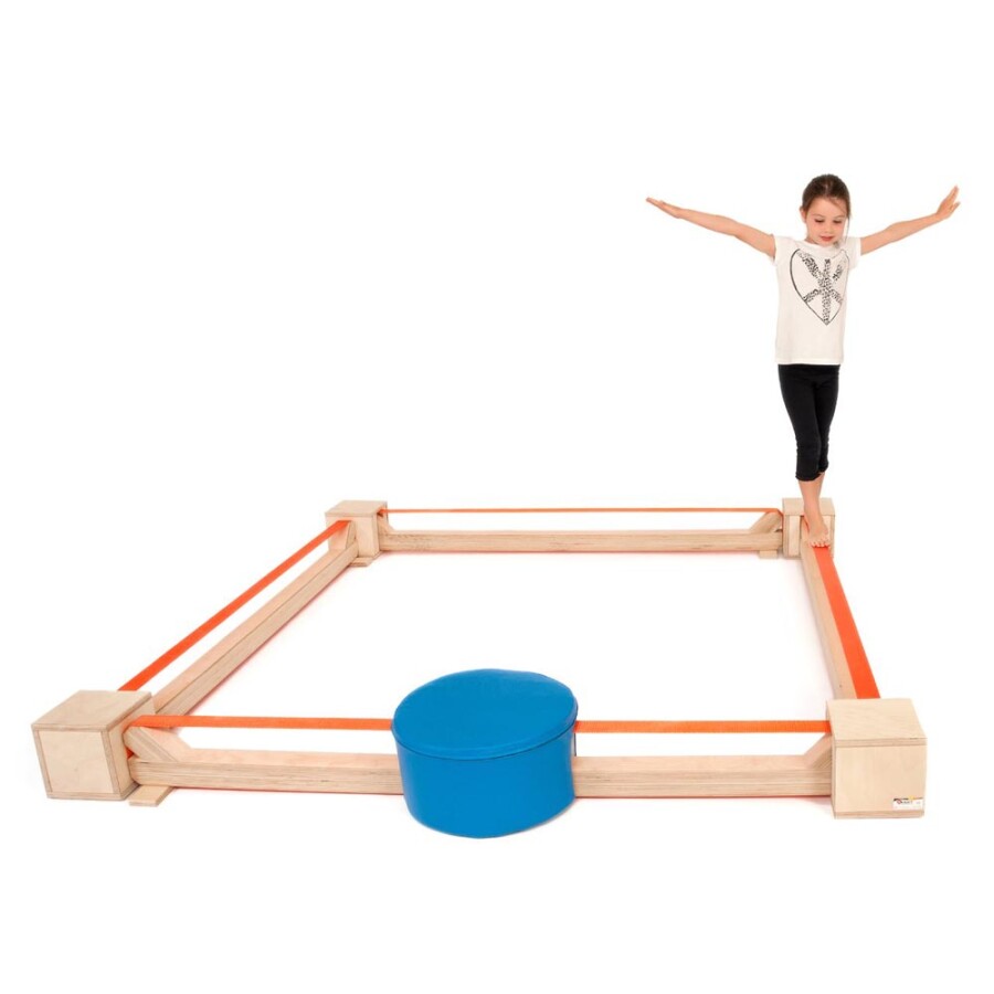 Met vier koorden bouw je in een handomdraai een volledige evenwichtsroute. Twee zachte platforms bieden rustpunten en variatie. De elementen zijn vrijstaand en direct inzetbaar. De antislip banden geven zekerheid bij elke stap. De lage hoogte vergemakkelijkt op- en afstappen. Perfect voor gym, speelzaal of motoriekkast.
