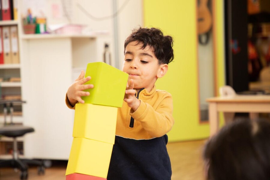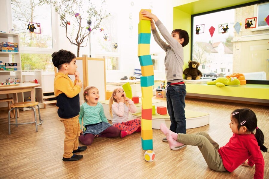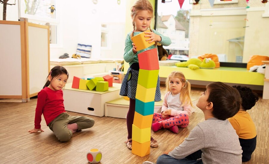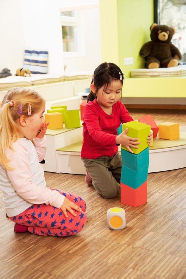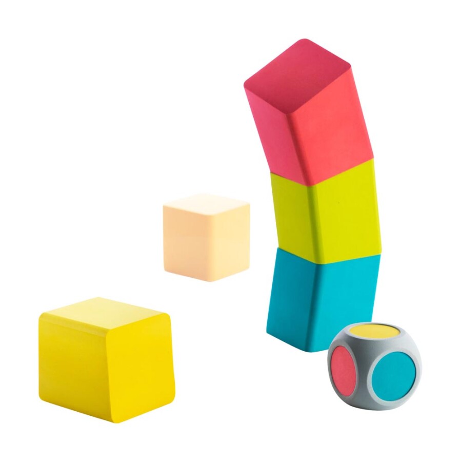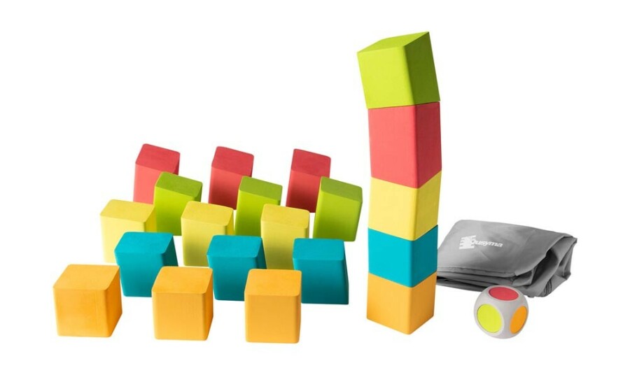 Extra grote stapelblokken met schuine kanten zorgen voor spanning en plezier. Gooi een kleur en stapel het juiste blok erop. De verschillende hellingen vragen balans, focus en fijne motoriek. Speel samen om de hoogste toren te bouwen. Geschikt voor gymzaal, speelplein of klaslokaal.