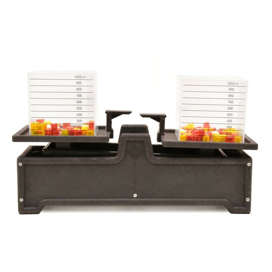 Met deze balansweegschaal zien kinderen meteen wat lichter, zwaarder of gelijk is. Dat stimuleert logisch denken en taal rondom meten. De schaal staat stabiel en is klaar voor klassikale proefjes of rollenspel. Maatbekers en weegsteentjes maken echt wegen mogelijk tot twee kilo. Gemaakt van gerecycled kunststof, dus sterk en onderhoudsarm.