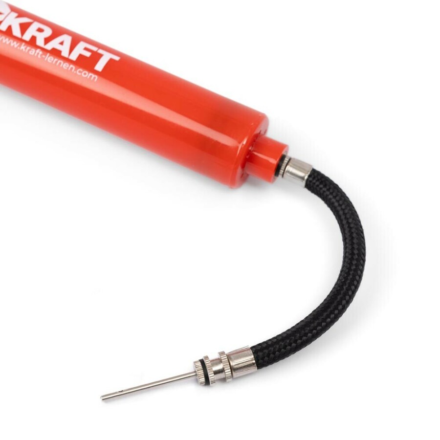 Met deze pomp blaas je ballen snel en veilig op, waar je ook bent. De flexibele slang beschermt de naald tijdens het pompen. De handgreep ligt goed in kleine handen. Naald en luchtmatras-adapter zijn inbegrepen. Alles past in het opbergtasje.