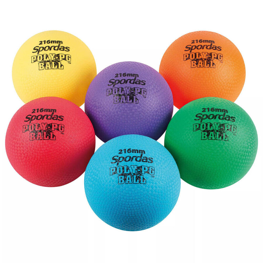 Een set van 6 zachte ballen met een diameter van 22 cm. De ballen hebben een ruwe grip wat ervoor zorgt dat kinderen makkelijker kunnen vangen en gooien. De ballen zijn naadloos, wat ervoor zorgt dat ze niet uit vorm raken, niet op de naad scheuren of dat er snel lekkage rond de naad ontstaat.