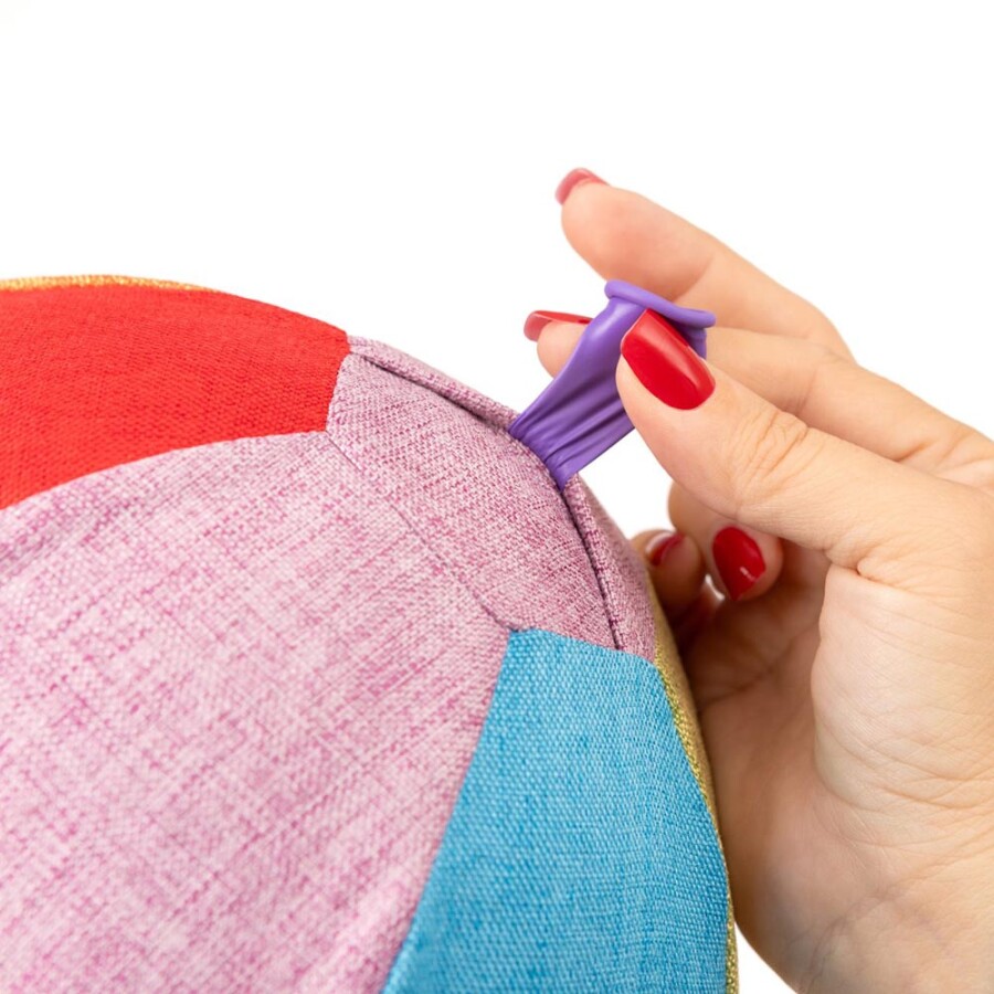 Stop een ballon in de hoes, blaas op en je hebt een lichte, zachte speelbal. Veilig voor binnen, leuk op het schoolplein en in de tuin. De opening klemt de tuit vast, knopen is niet nodig. Na gebruik laat je de lucht eruit en vouw je hem klein op. Het stevige katoen-polyester mengsel gaat lang mee.
