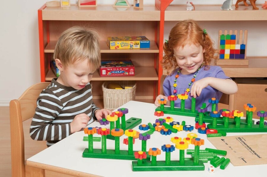 Grote set bloemen en stelen voor sorteren, tellen en spel. Kinderen ordenen naar lengte, vorm en kleur. Geschikt voor gezamenlijke spelletjes of open opdrachten. Stevig en prettig vast te houden materiaal.