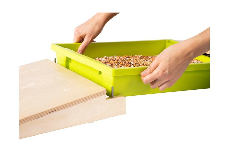 - Inclusief vulbak met deksel (31,5 x 42 x 7,5 cm) en 2 antislip hellingen