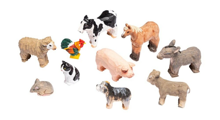 Ambachtelijke houten dieren geven rollenspel en verhaal een warme uitstraling. Gemaakt van duurzaam lindehout uit verantwoord beheerde bossen. Prachtig bij het thema boerderij en kleine-wereldspel. Elk stuk is uniek; kleine verschillen horen erbij.