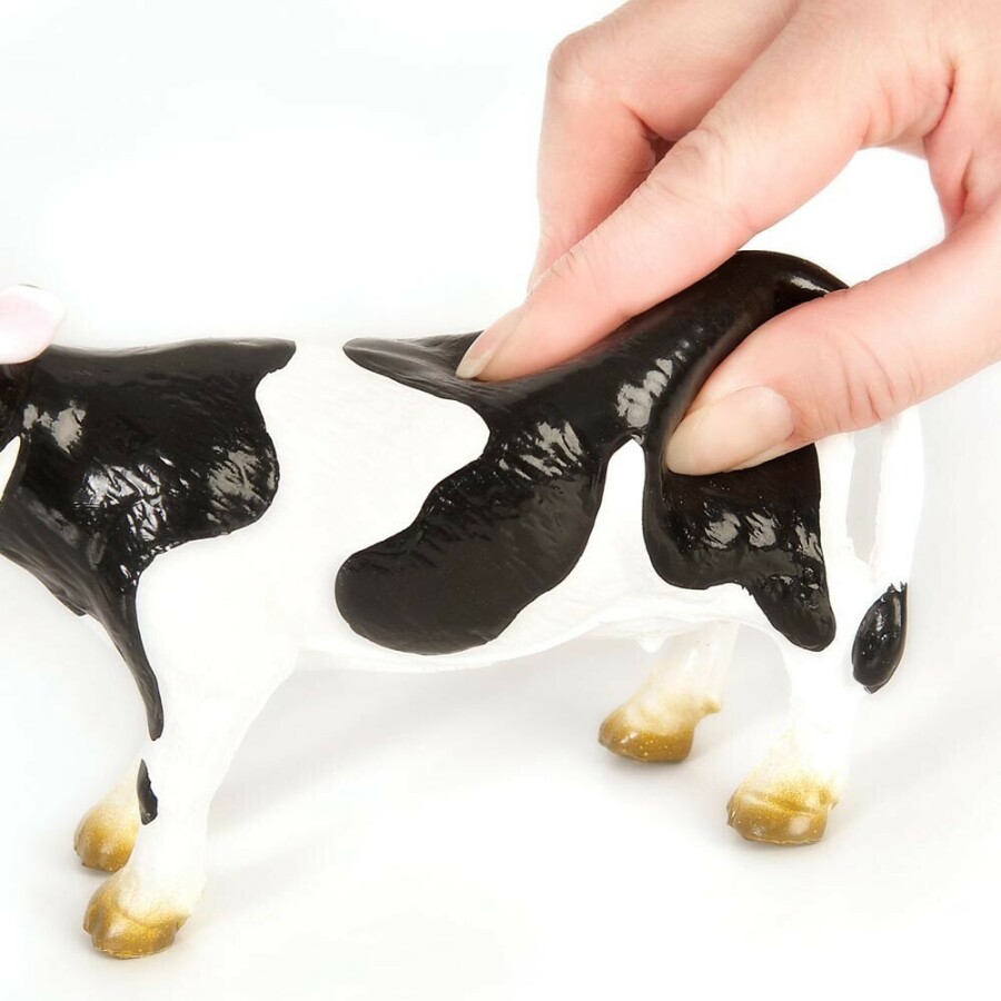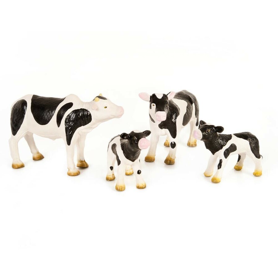 De koeienfamilie nodigt uit tot levensecht rollenspel in klas en thuis. De figuren zijn zacht om vast te pakken, maar blijven stabiel staan op tafel of speelmat. Ze zijn gemaakt van flexibel natuurrubber, veilig voor kleine handen. Bespreek waar melk vandaan komt en laat kinderen hun verhalen spelen.
