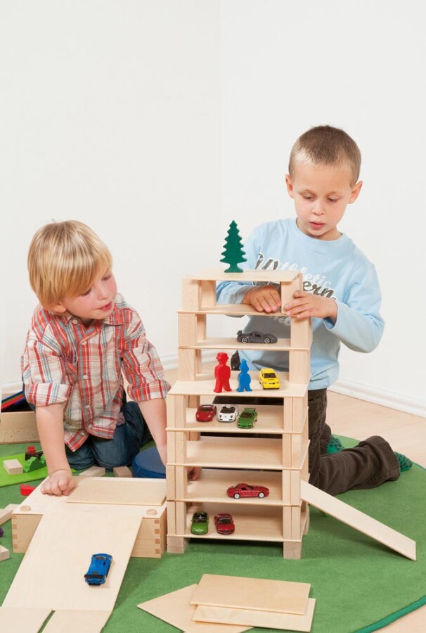 Met houten bouwplaten kunnen kinderen stevige tussenvloeren en daken maken, waardoor torens en huizen veel stabieler worden. Ze vullen bestaande bouwstenen makkelijk aan, bijvoorbeeld de andere houten bouwblokken van Uhl. De set bevat platen in drie formaten, zodat je zowel hoge torens als brede dakconstructies kunt bouwen. Perfect voor in de klas of thuis; het materiaal is duurzaam hout en combineert eenvoudig met andere blokken.