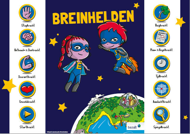 Op zoek naar een doorgaande leerlijn op het gebied van executieve functies voor jouw school? Met deze vernieuwde complete set Breinhelden leren je leerlingen hoe ze hun Breinkrachten (ofwel executieve functies) kunnen versterken. Breinkrachten zijn de functies die we nodig hebben om ons gedrag te sturen, zoals aandacht vasthouden, flexibiliteit, doelgericht doorzetten en emotieregulatie.