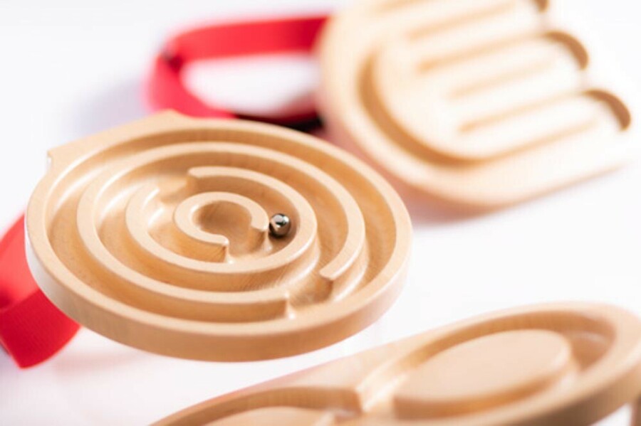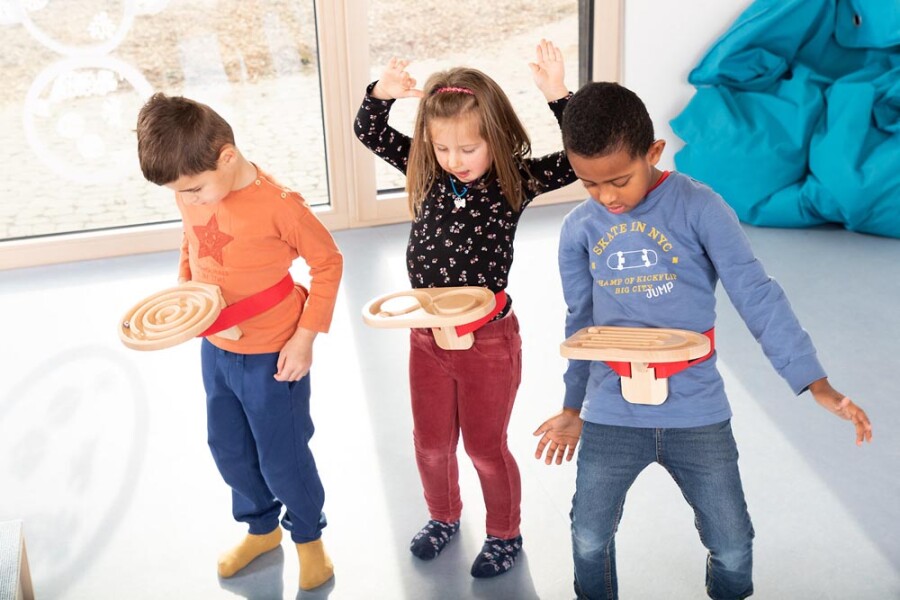 Drie labyrinten met oplopende moeilijkheid vragen om voelen, plannen en samenwerken.