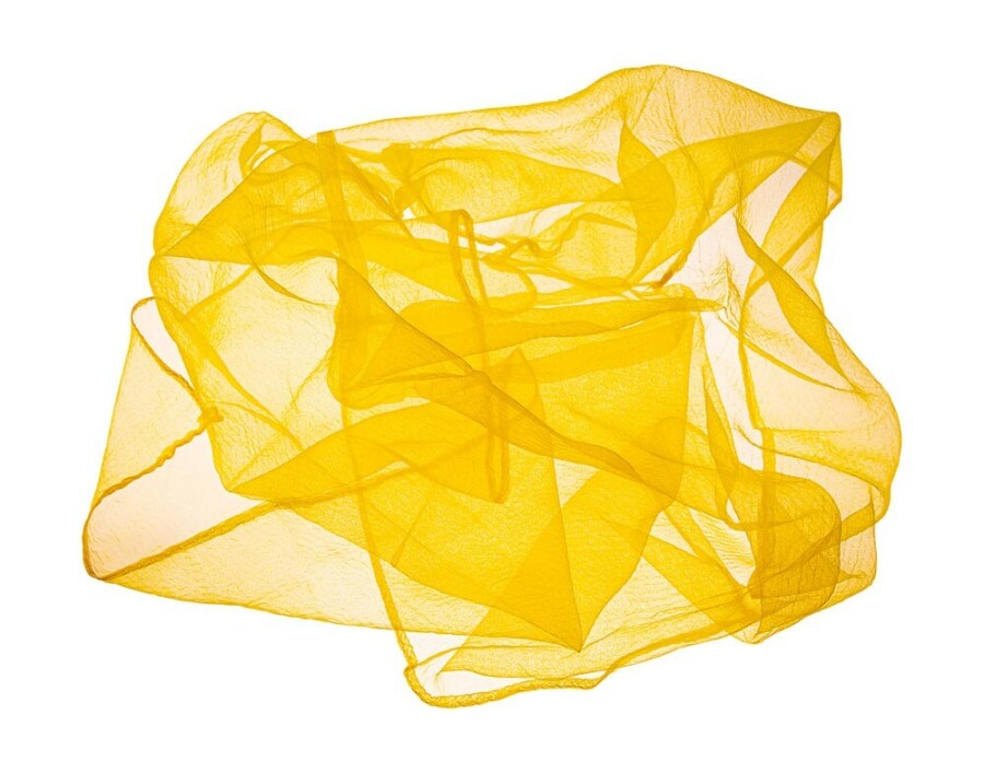 Transparant chiffon doek in een zonnige gele tint voor dans, spel en rustmomenten. Zweeft mooi, prikkelt fantasie en helpt bewegingen zichtbaar te maken.