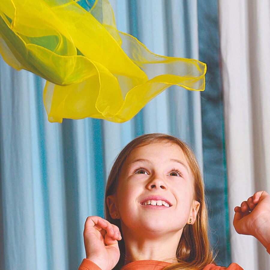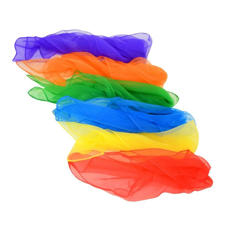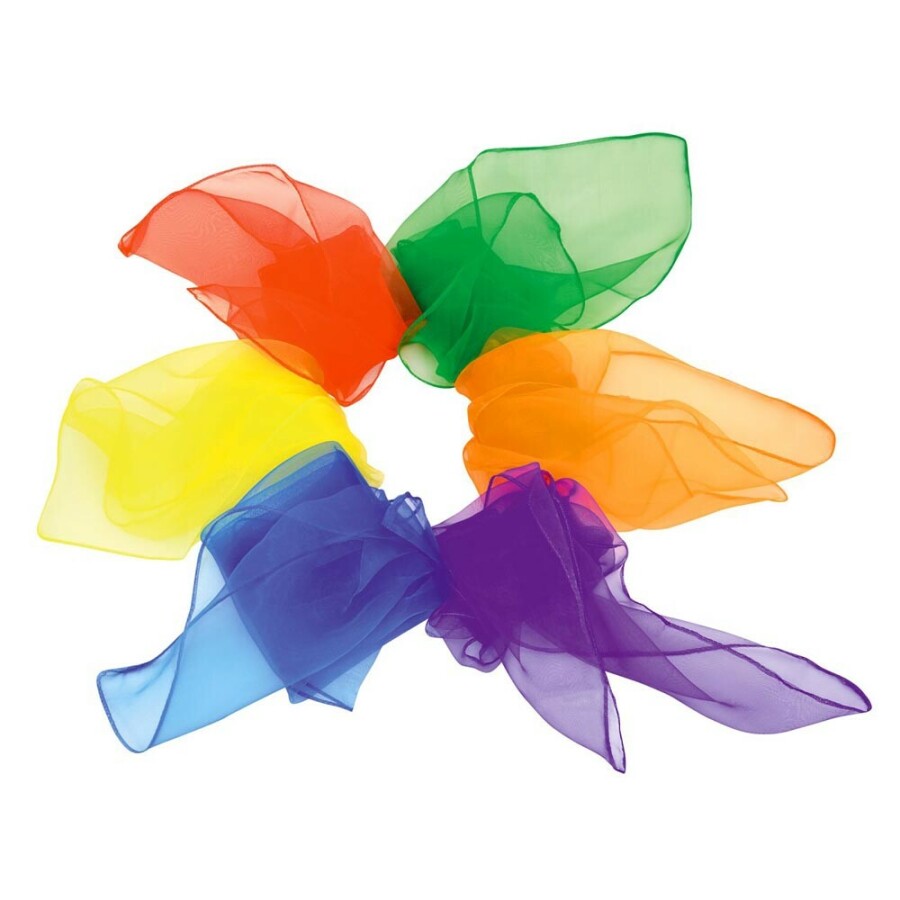 Lichte chiffon doeken zweven langzaam, waardoor vangen, gooien en ritme oefenen lukt voor ieder kind. Het transparante, zachte materiaal prikkelt de zintuigen en nodigt uit tot rustig spel. Gebruik ze ook voor dans, drama of thematafels in de klas. Even uitwasbaar en snel weer droog. Handig voor gym, kring en spelhoek.