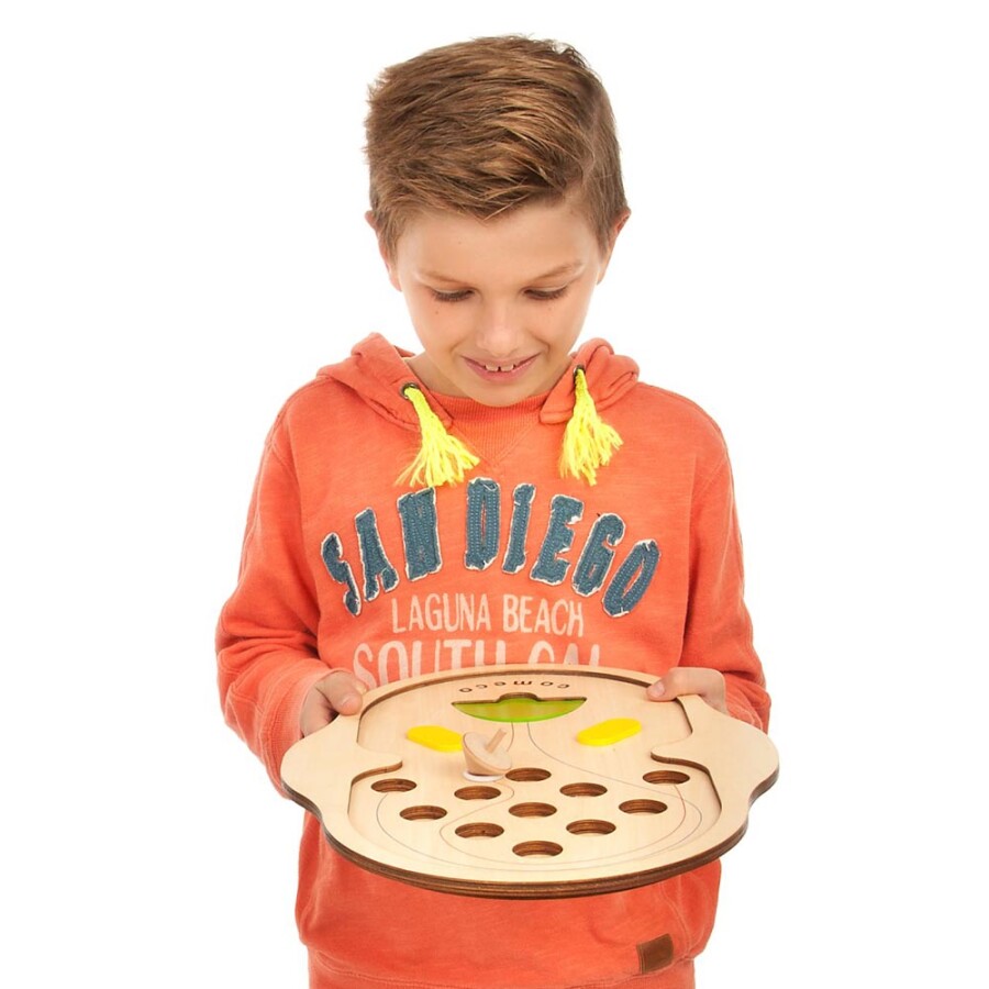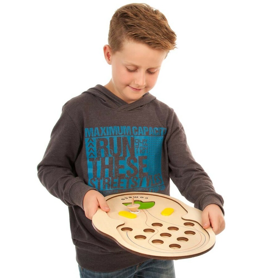 Motoriek en focus in één spannend behendigheidsspel voor klas en thuis. Met een spintol stuur je witte ringen naar cijfers en doelen. Kinderen spelen solo of in teams en verzinnen snel eigen uitdagingen. Het houten bord vraagt balans, geduld en slimme hand- en oogcoördinatie. Ideaal voor korte speelmomenten en als rustige vaardigheidsoefening.