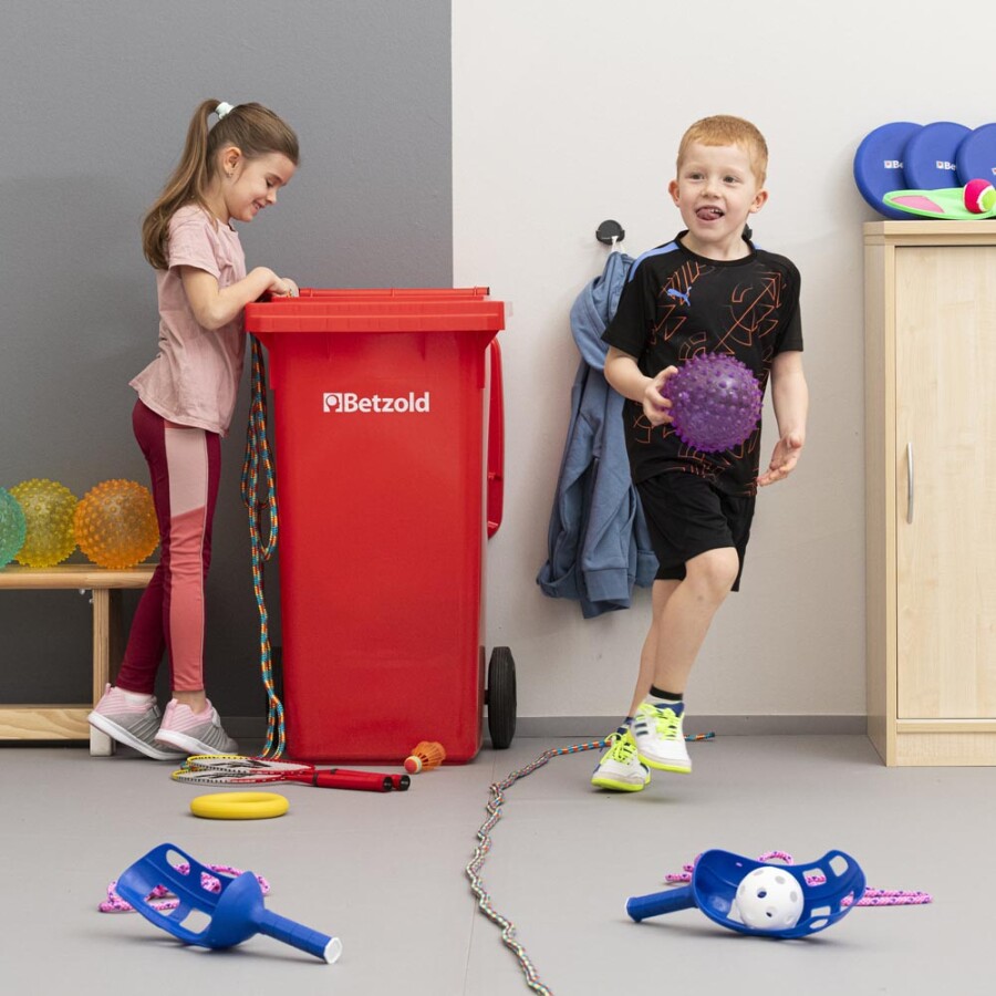 Deze complete pauze speelset in een verrijdbare ton is perfect voor scholen die hun speelpleinen en gymzalen willen verrijken. Met 44 verschillende speel- en sportartikelen kunnen minstens 80 kinderen tegelijkertijd actief bezig zijn. Of het nu gaat om touwtjespringen, jongleren, vangen of gooien, deze set biedt voor ieder wat wils. De stevige kunststof ton met twee grote wielen maakt het eenvoudig om de set naar elke gewenste plek te verplaatsen. Ideaal voor pauzes en bewegingslessen waarbij samenwerking en motorische vaardigheden centraal staan.