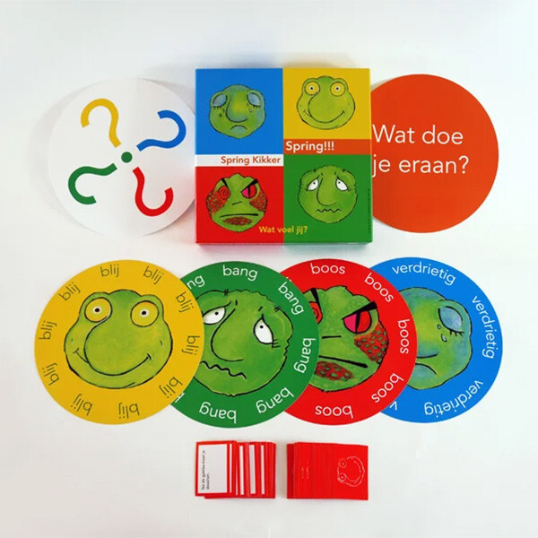 Gevoelens en emoties spelen een belangrijke rol in ons leven. Ze beïvloeden sterk ons gedrag en daarom is het zinvol om ze te leren kennen en te begrijpen, omdat daarmee de sociale vaardigheden bevorderd worden. In het springspel SpringKikkerSpring! van De Coole Kikker worden kinderen gestimuleerd te ontdekken welke gevoelens ze kunnen hebben in een bepaalde situatie. Ook leren zij na te denken over het waarom van die gevoelens en te bedenken wat zij zouden kunnen doen om zich beter te voelen. Gevoelens die aan bod komen zijn boos, bang, blij en verdrietig.
