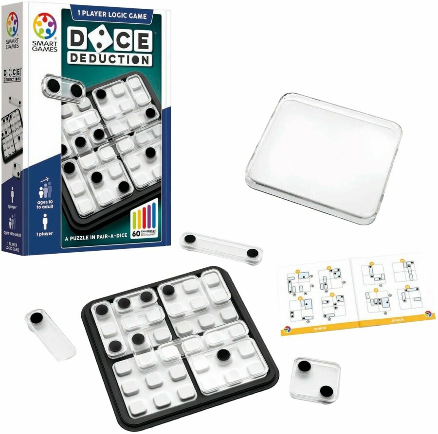 Daag je brein uit met Dice Deduction, hét denkspel waarbij logica en strategie samenkomen. Plaats de transparante speelstukken zó dat de zwarte stippen exact overeenkomen met de dobbelsteenzijden uit de opdracht, terwijl de sommen kloppen met de pijlen. Met 60 unieke opdrachten biedt dit spel urenlang puzzelplezier en oefent het belangrijke cognitieve vaardigheden zoals concentratie, probleemoplossend denken en ruimtelijk inzicht.