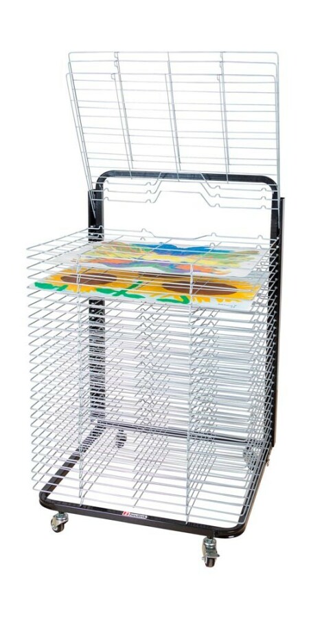 Grotere kunstwerken drogen netjes en zonder stapelen op dit robuuste droogrek. Dertig verstelbare roosters bieden plek aan veel werk, tot A2-formaat. Dankzij de zwenkwielen verhuis je het rek soepel naar waar ruimte is. Zelf monteren gaat snel, zodat het direct inzetbaar is in de klas.