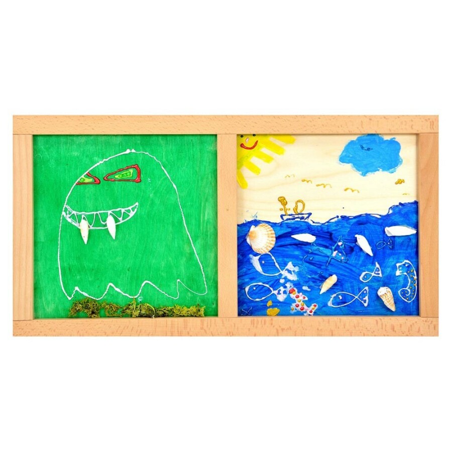 Geef kinderkunst een zichtbare plek met deze robuuste houten dubbele lijst. Zonder glas, dus ideaal voor 3D werk of gevonden schatten. Wisselen gaat snel, zodat nieuwe creaties direct kunnen hangen. Past mooi in klas, gang of ouderhoek en hangt stevig met de meegeleverde set.