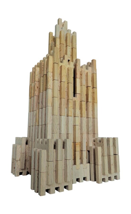 Deze robuuste insteekblokken van beukenhout zijn al generaties lang favoriet in onderwijs en opvang. Groeven en tanden met gelijke maat maken stabiele verbindingen. Kinderen ontwerpen grote en kleine constructies en leren plannen tijdens het bouwen. Het royale aantal nodigt uit tot samenwerken.