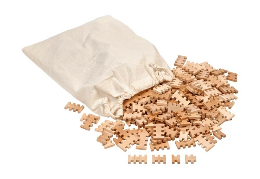 - Inhoud: 500 bouwstenen en 1 katoenen bewaarzak