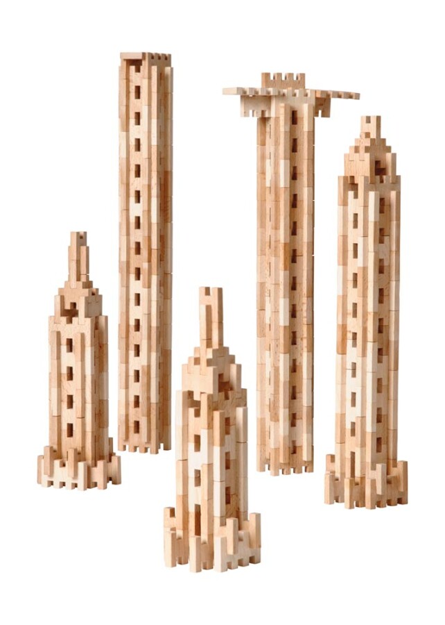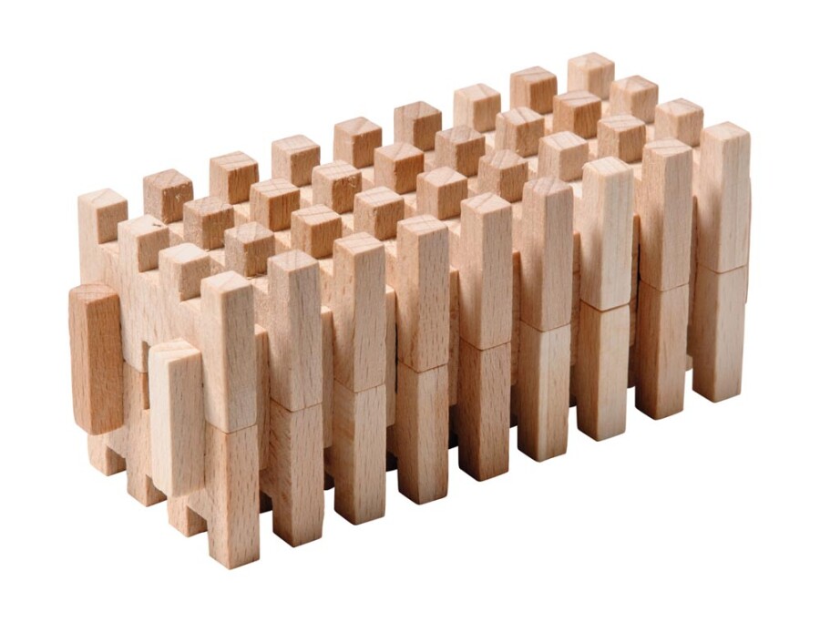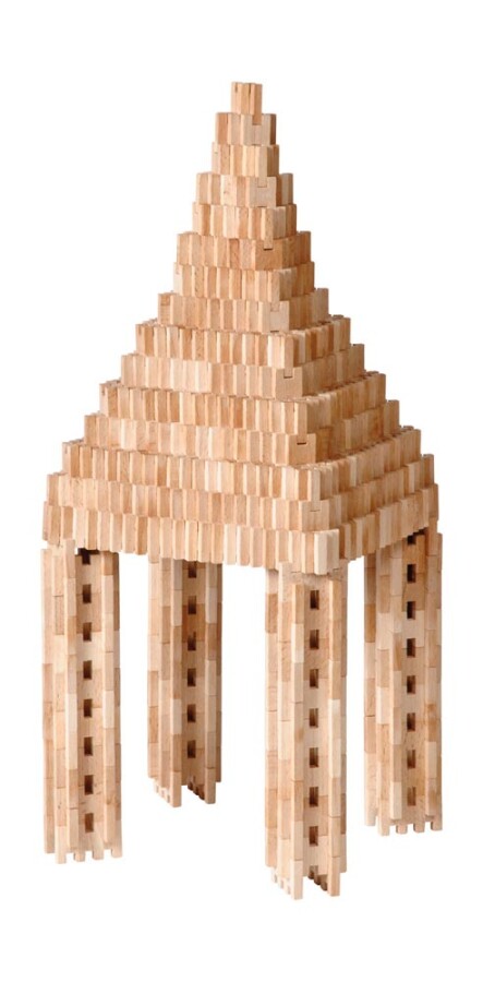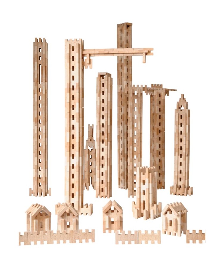 Deze 500-delige set houten steekbouwstenen is een solide basis voor techniek en architectuur in de klas. Tegenoverliggende groeven en tandjes klikken stevig, zodat kinderen planmatig en creatief kunnen bouwen.