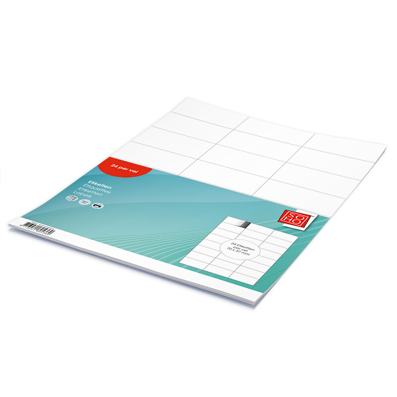 De SOHO Etiketten A4 zijn ideaal voor al uw labelbehoeften. Elk pakket bevat 10 vellen, met elk 24 etiketten. De etiketten hebben een formaat van 70 x 37 mm, perfect voor een breed scala aan toepassingen.