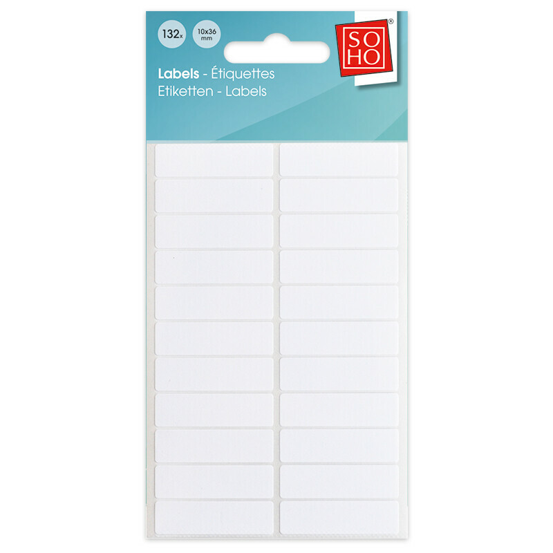 De SOHO etiketten zijn ideaal voor al je labelbehoeften. Deze witte etiketten hebben een formaat van 36x10 mm en worden geleverd in een set van 132 stuks. Elke verpakking bevat 6 vellen met elk 22 etiketten, wat zorgt voor een handige en efficiënte manier om je items te organiseren en te categoriseren. Perfect voor zowel thuis- als kantoorgebruik.