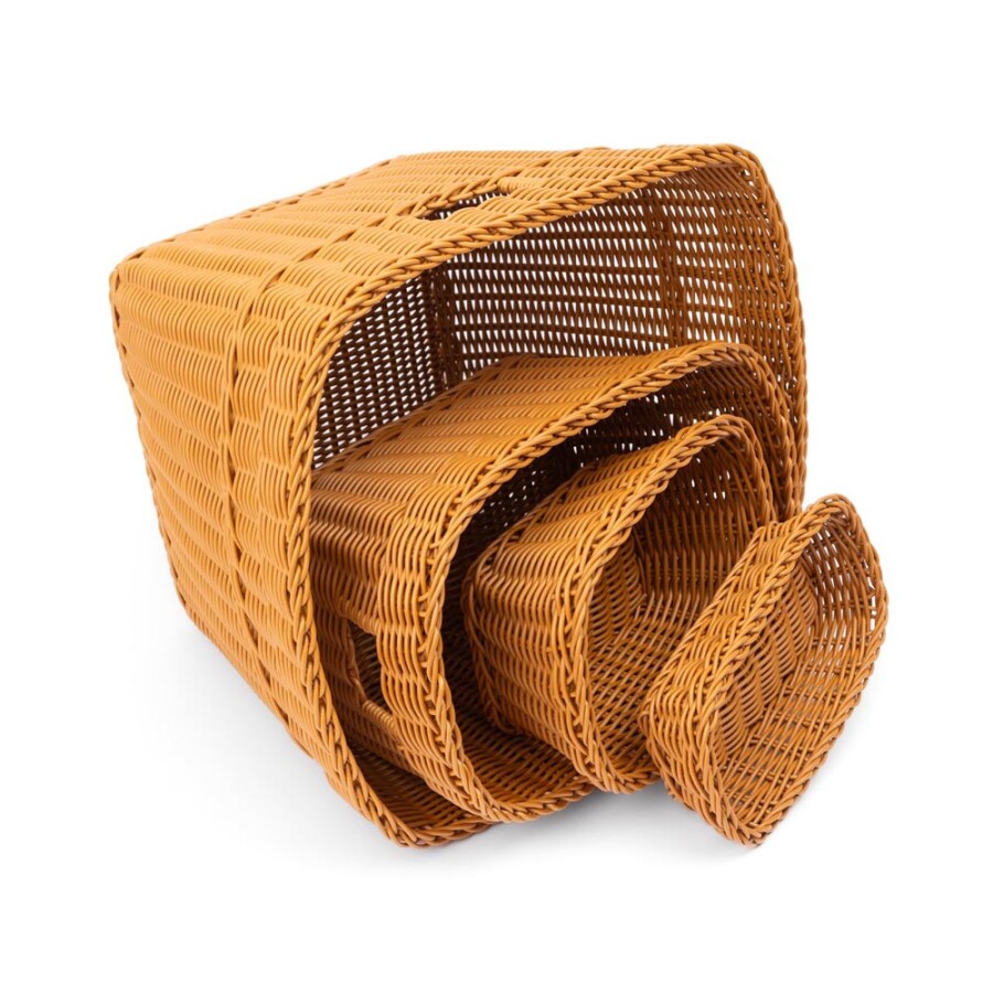 Vier stevige opbergmanden voor klas, opvang of thuis. Ze houden blokken, knutselspullen en reservekleding netjes geordend. Het flexibele kunststof geeft mee, met veilige, zachte randen. Handgrepen maken verplaatsen makkelijk, ook door kinderen. Schoon te houden met een doek of in de vaatwasser tot 70°C.