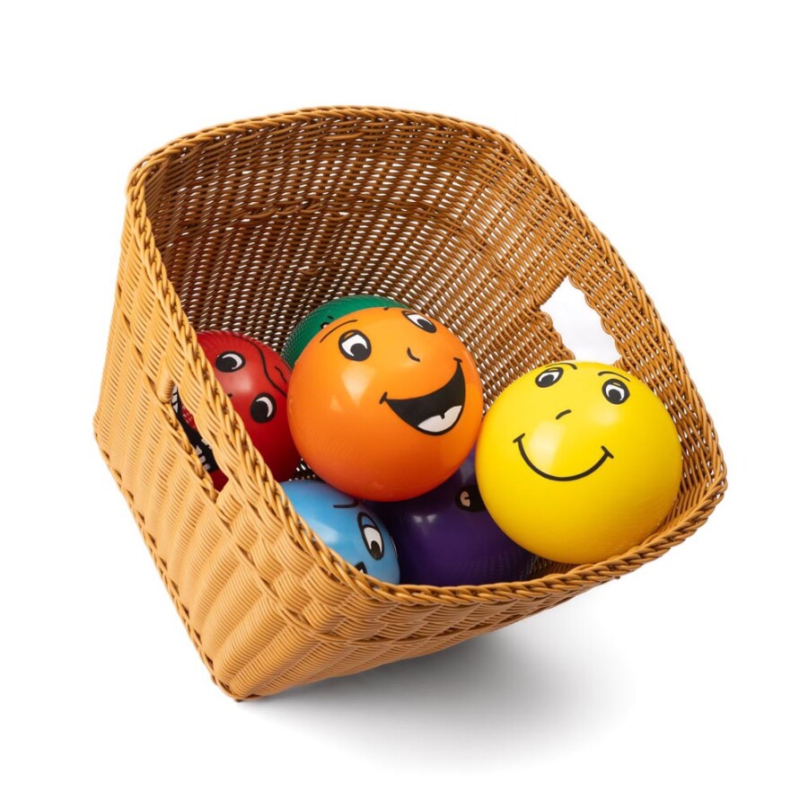 Voor groot speelgoed, was of bulkmaterialen is deze ruime mand ideaal. Het stevige, buigzame kunststof geeft mee en heeft zachte randen. De stevige handgrepen maken dragen door school of huis comfortabel. De vlechtlook oogt warm en past mooi in kasten. Afwasbaar en vaatwasserbestendig tot 70°C voor snelle schoonmaak.
