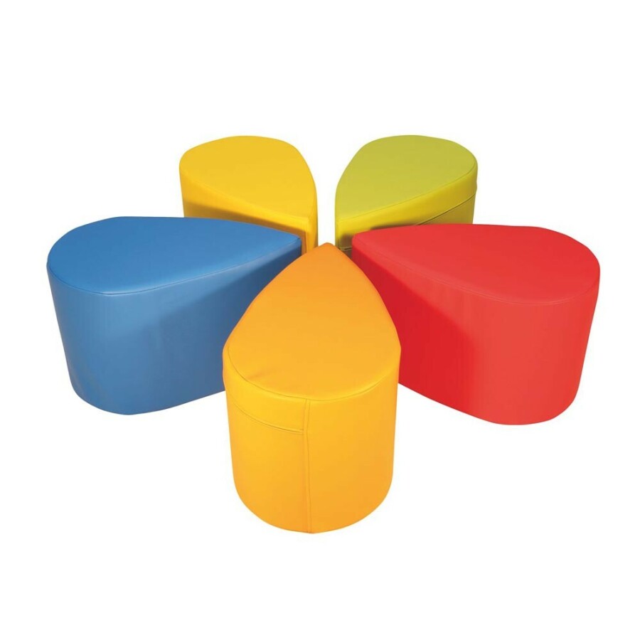 Vijf stevige zitelementen in bloemvorm nodigen uit tot spelen, zitten en sorteren. De schuimkern blijft vormvast en voelt zacht aan. Het kunstleer is makkelijk af te nemen en slijtvast. De antislip onderzijde houdt de blaadjes netjes op hun plek. Ideaal voor kleine kringactiviteiten met kinderen van 4 tot 6 jaar.