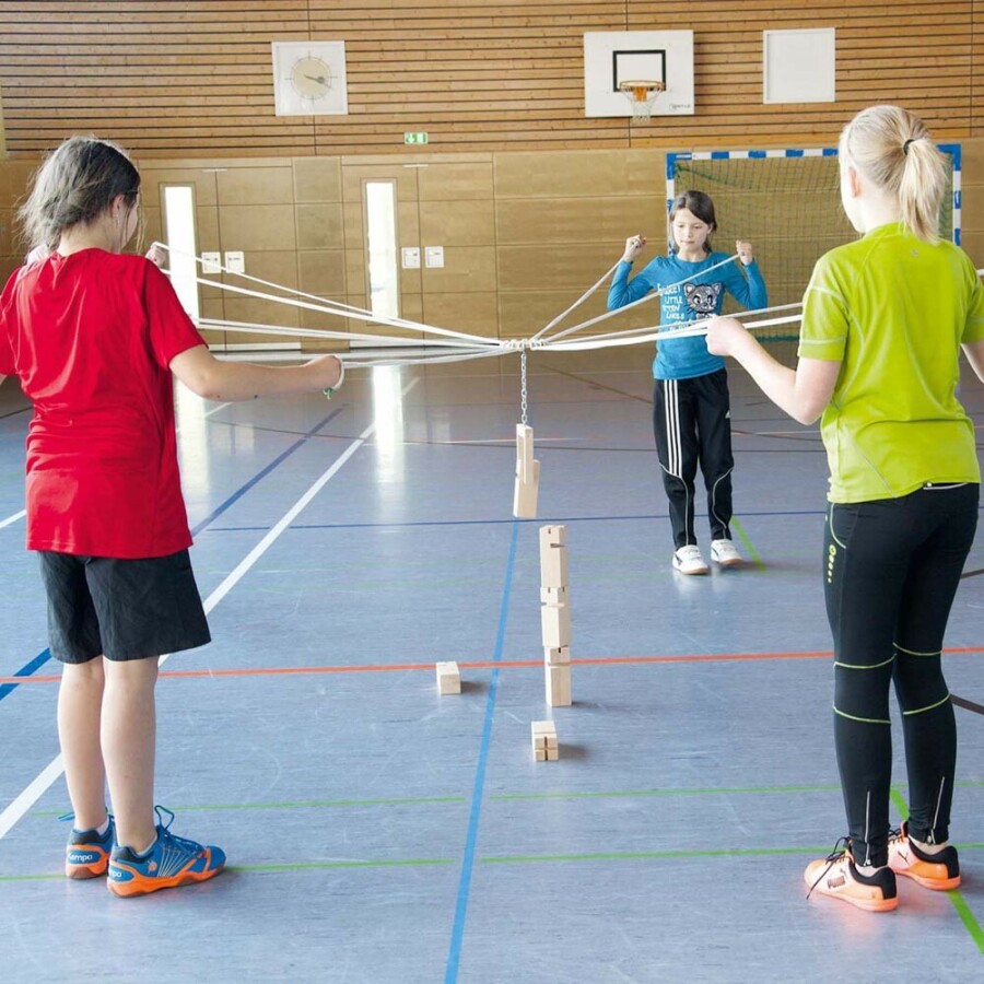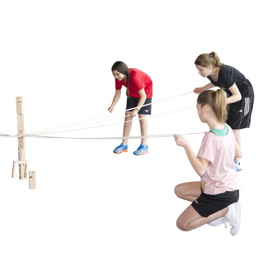 Dit teamspel laat groepen samenwerken aan een wiebelende toren met touwtjes en haak. Spelers verdelen taken, communiceren en oefenen geduld en concentratie. De set is gemaakt van massief beukenhout en afgewerkt met speekselveilige lak. Robuust voor veel spelmomenten, binnen en buiten. Werkt al vanaf zes jaar en groeit mee met de groep, klein of groot.