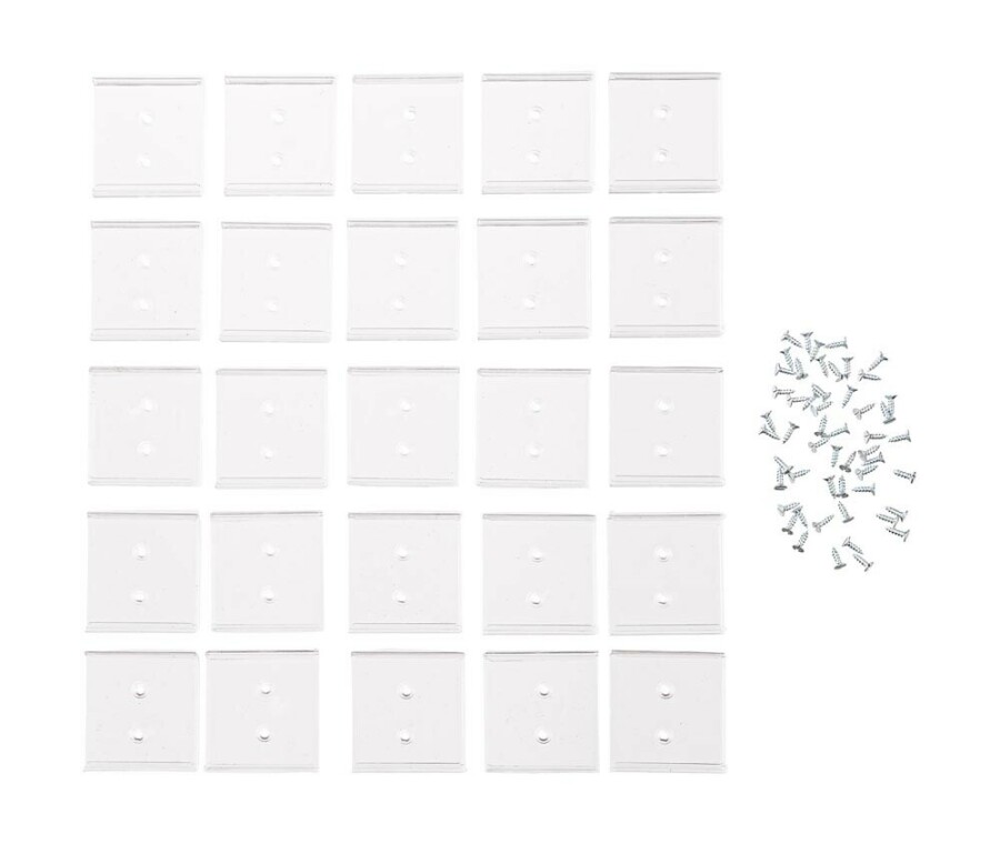 - Set van 25 labelhouders met twee schroefgaten en bijpassende schroeven.