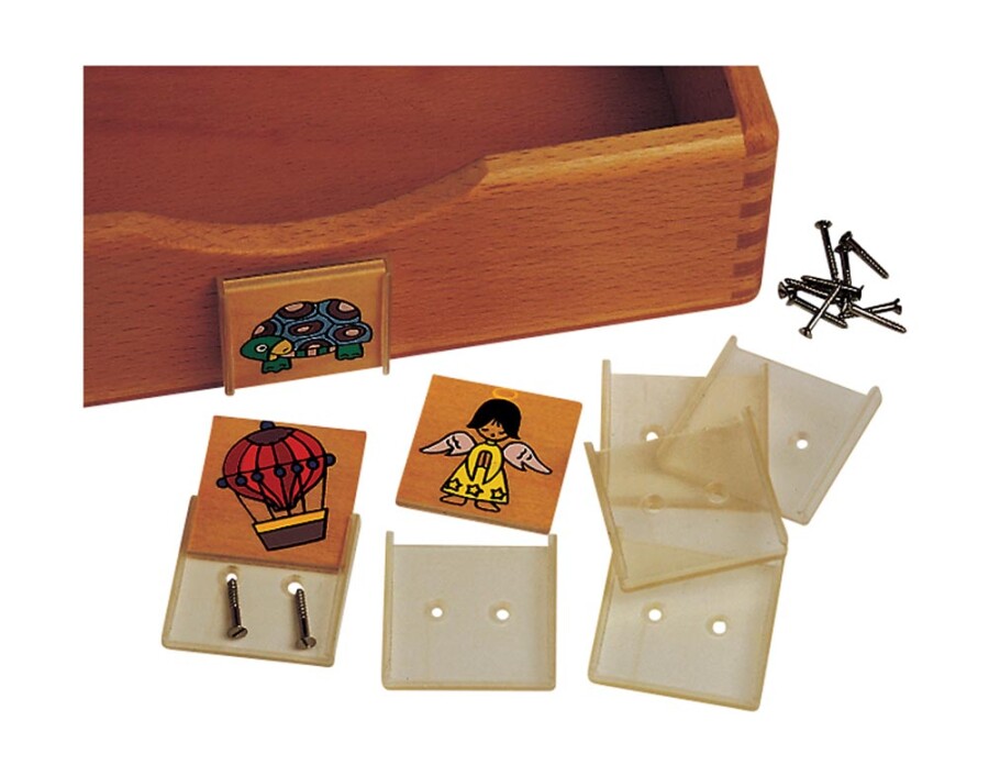 Labelhouders voor kasten, lades en vakken zorgen voor duidelijke ordening in klas en opvang. Ze worden vastgeschroefd, dus geen gedoe meer met stickers of lijmresten. Labels wissel je in een handomdraai, ook door kinderen onder begeleiding. De frames zijn compact en passen op veel materialen.