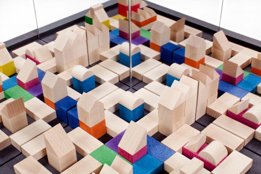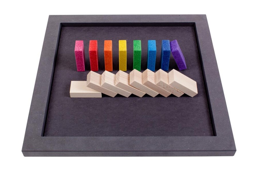 Bouwen, onderzoeken en vergelijken met een set die hout, steen en spiegels slim combineert. Kinderen ontdekken vormen, symmetrie en balans en ervaren verschil in gewicht en textuur. Geïnspireerd op de Fröbelgaven en geschikt voor vrij spel, onderzoek en architectuurwerkjes.