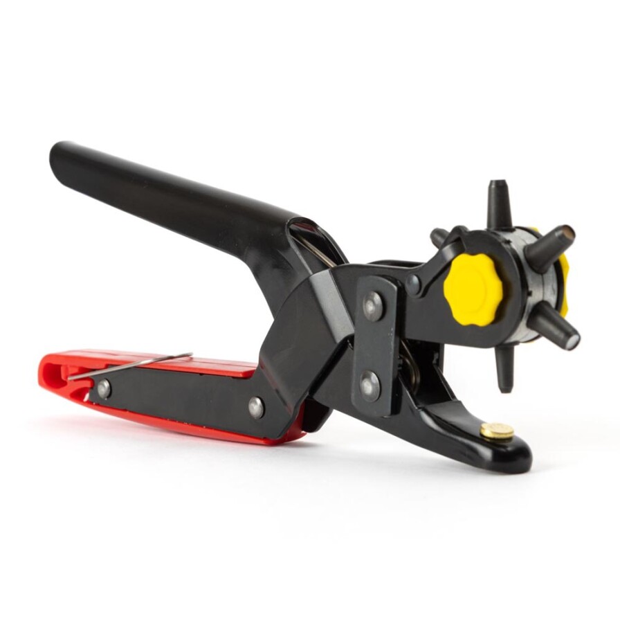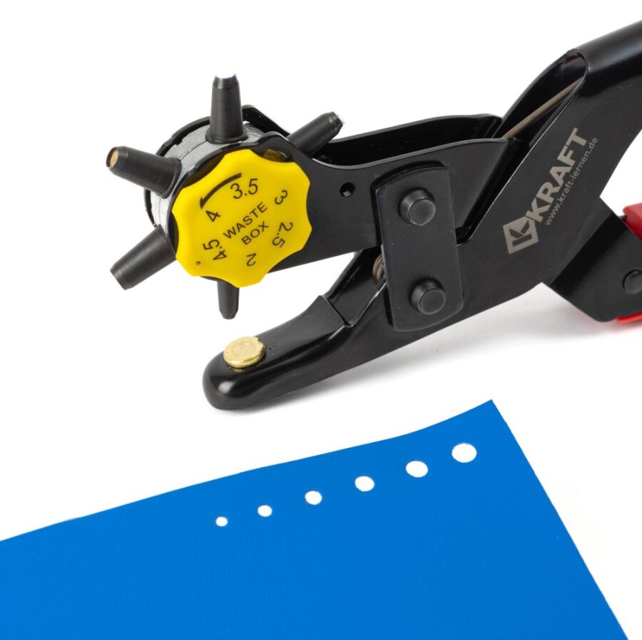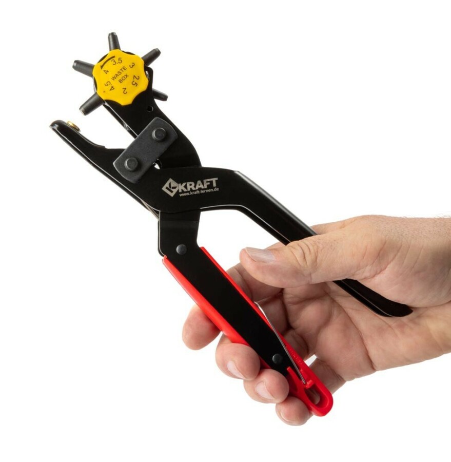 Met deze gaatjestang maak je snel en netjes ronde gaatjes in leer, textiel en karton. De zes ponsmaten geven precies de speling die je nodig hebt voor riemen en klussen. De scherpe stempels zorgen voor schone randen zonder rafels. De stalen tang ligt stevig in de hand, met comfortabele kunststof grepen. Dankzij de openingsveer werk je vlot door.