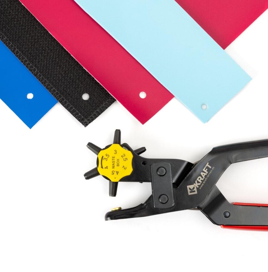 - Voor leer, gordels, stof, zachte kunststoffen en papier/karton