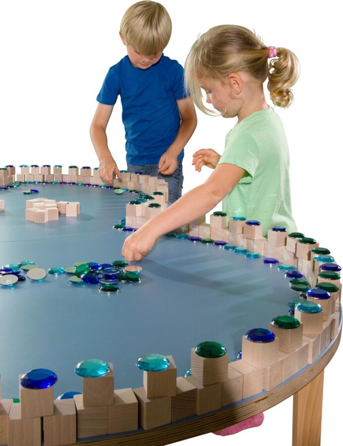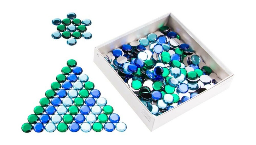 Deze extra grote juwelen vullen de bouw- en thematafel met kleur en focus. Kinderen maken patronen, versieren bouwwerken en oefenen tellen en vergelijken. De grote maat is goed zichtbaar in de groep. Werkt mooi samen met kleinere steentjes.