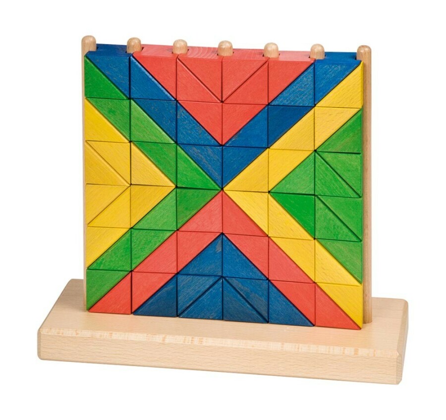 Bouw geometrische patronen in rijen en ontdek eigenschappen van driehoeken. Volg voorbeelden of ontwerp vrij en maak daarna eigen kaarten. Versterkt ruimtelijk inzicht, concentratie en doorzettingsvermogen. Ideaal voor rekenhoek en pluswerk. Stabiele standaard werkt fijn op tafel of vensterbank.