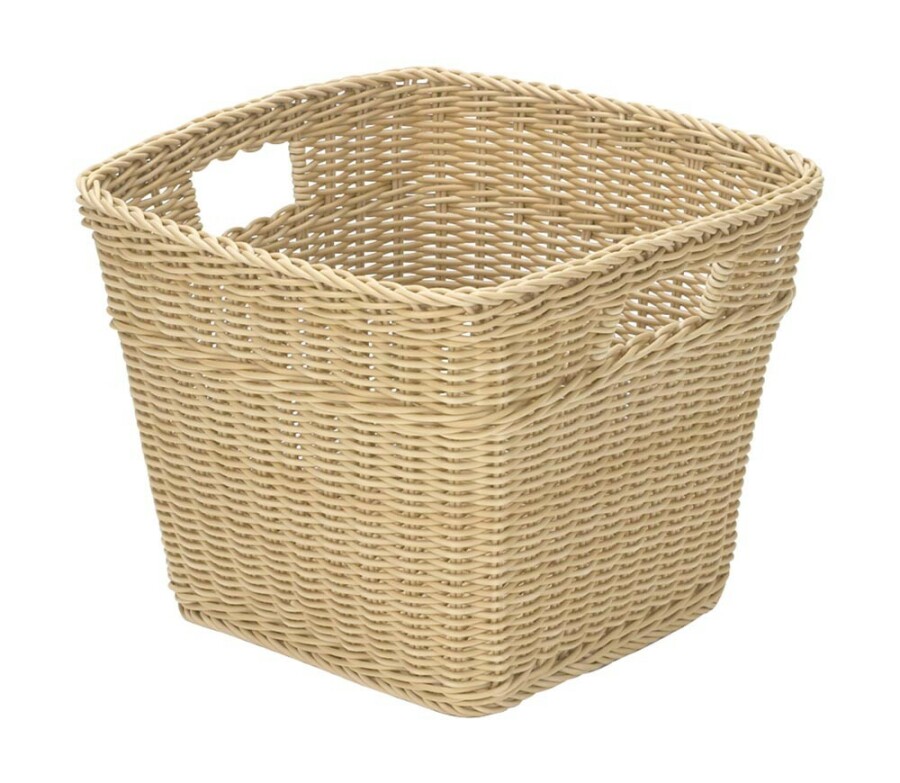 Grote gevlochten mand met veel ruimte en betrouwbare kleurvastheid. Kan zonder zorgen in natte omgevingen blijven staan. Buigt hij, dan springt hij terug in vorm. Ideaal voor wasgoed, knutselspullen of klasmaterialen. Met 43 liter inhoud en een lichte beige tint.