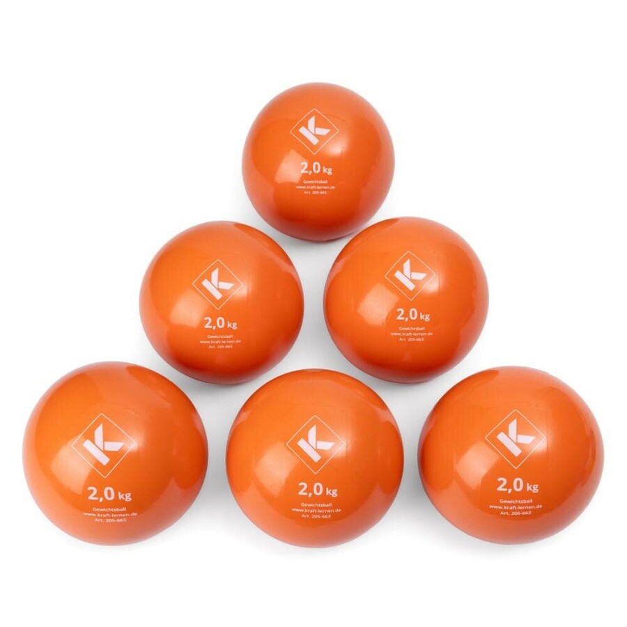 Zes oranje gewichtsballen van 2 kg voor intensere oefeningen en sportlessen. Het zachte, gripvaste oppervlak ondersteunt controle en veiligheid. Lucht via het ventiel aanpassen maakt differentiëren per leerling eenvoudig. Schoonmaken kan snel met een doek.