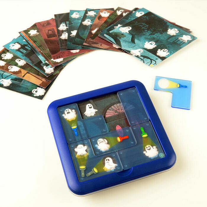 Ghost Hunters bevat een spelbord, 6 transparante puzzelstukken, 30 dubbelzijdige opdrachtkaarten / 60 opdrachten en een apart boekje met speluitleg en de oplossingen.