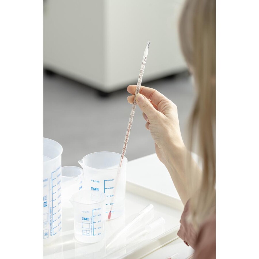 Deze glazen thermometer van 30 cm is perfect voor gebruik in de klas tijdens natuur- en scheikundeprojecten. Hij meet nauwkeurig temperaturen van -30°C tot 100°C, zodat je altijd de juiste metingen hebt voor je experimenten. Dankzij de meegeleverde afsluitbare plastic koker kun je de thermometer veilig opbergen zonder kans op breuk. Ideaal voor het meten van vloeistoffen en kamertemperaturen.