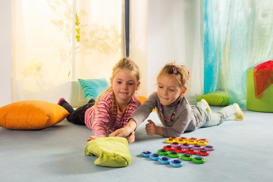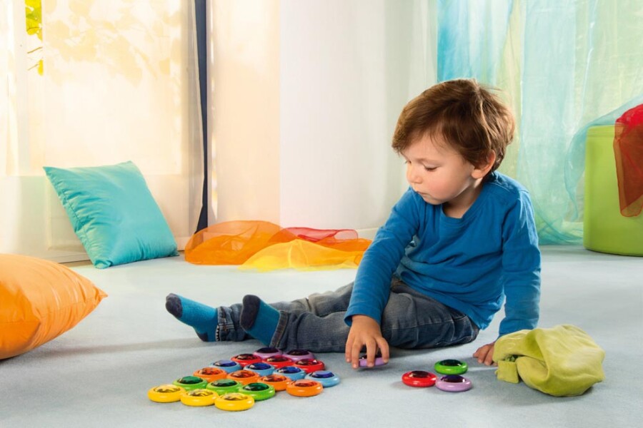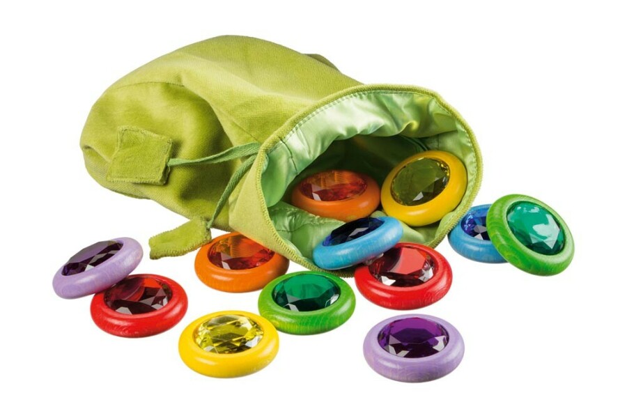 Deze glinsterende speelstenen nodigen uit tot sorteren, patronen leggen en eenvoudige telactiviteiten. Kinderen vergelijken kleuren, maken rijen en verzinnen spellen. Mooi materiaal voor rekenhoek en vrij spel.