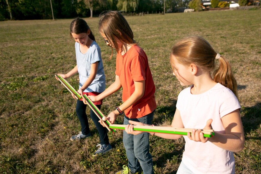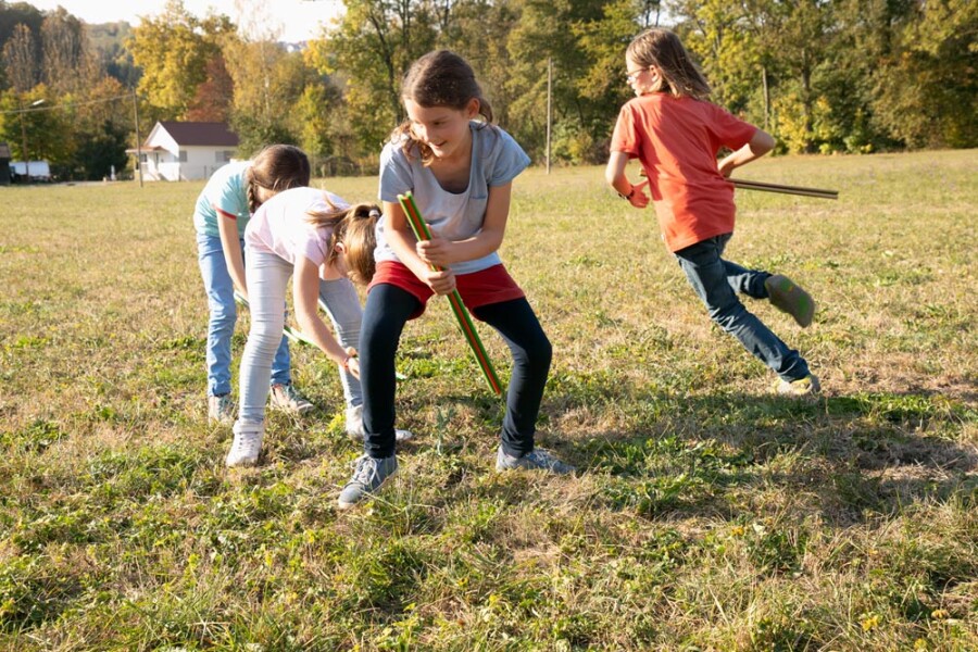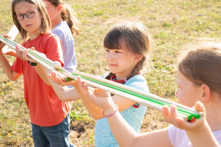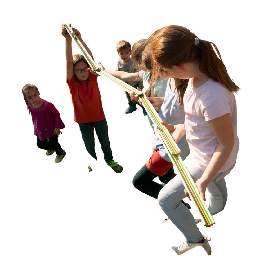 Een beweegspel dat samenwerking en concentratie traint. Vorm samen een goot en rol de bal van speler naar speler. Afspreken, sturen en bijsturen staan centraal, plezier voorop. Compact mee te nemen in de klas of naar buiten.