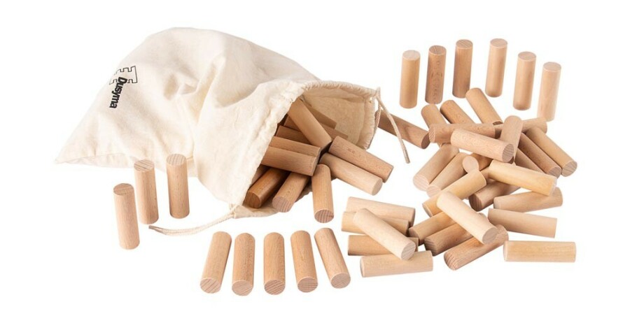 Stevige houten pluggen voor bouwen, tellen en sorteren in de klas of thuis. De grote maat ligt fijn in kleine handen. Gebruik ze voor patronen, reeksen en constructies met klei of piepschuim. Geleverd in een handige katoenen zak.