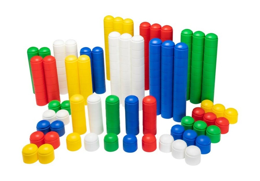 Extra grote koppelstukken voor de allerkleinsten bouwen veilig en stabiel. Kinderen vanaf ongeveer één jaar oefenen grijpen, stapelen en verbinden. Elementen klikken recht of onder hoek in elkaar. Perfect voor bouwmatten en vloerconstructies in de groep.