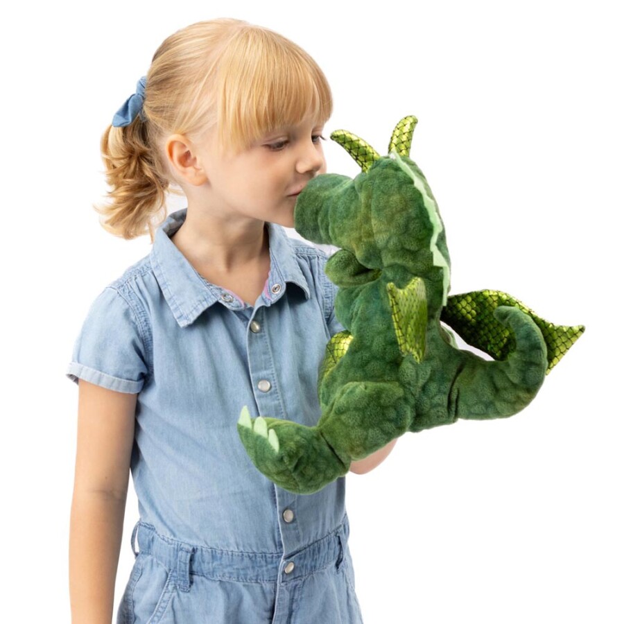 Deze stoere drakenhandpop trekt meteen de aandacht en nodigt uit tot fantasierijke verhalen. De ruime opening maakt bewegen van kop en poten eenvoudig. Zo ontstaat vanzelf dialoog, samenwerking en spelplezier. Zachte materialen zorgen voor een prettig, veilig gevoel. Na gebruik kan hij gewoon weer in de was.