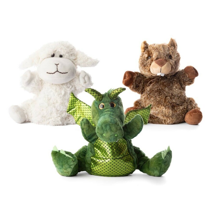 Drie karaktervolle handpoppen voor verhalen die blijven hangen: een rustig schaap, een vrolijke bever en een stoere draak. De grote opening past kinder- en volwassen handen, zodat hoofd en poten makkelijk bewegen. Ideaal voor kring, sociaal-emotioneel leren en fantasierijk spel. Zachte pluche afwerking zorgt voor directe klik met kinderen. Stevig en wasbaar, dus klaar voor intens spelen.