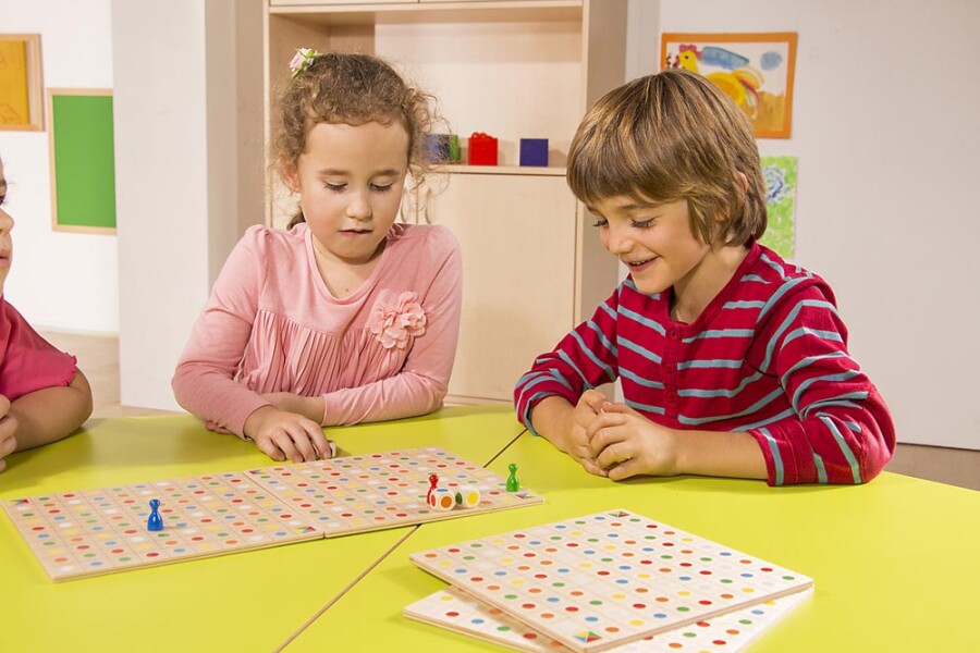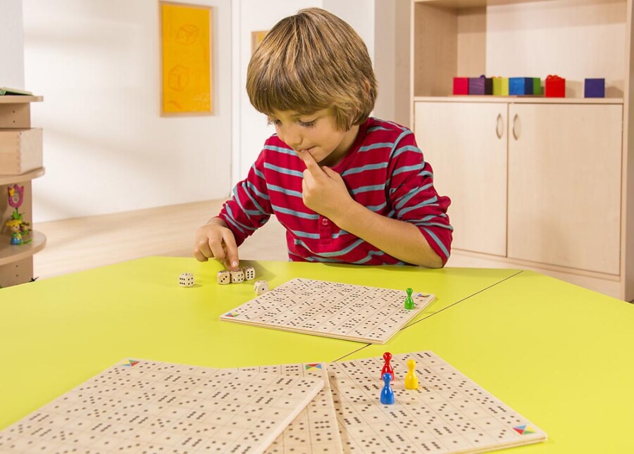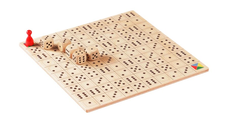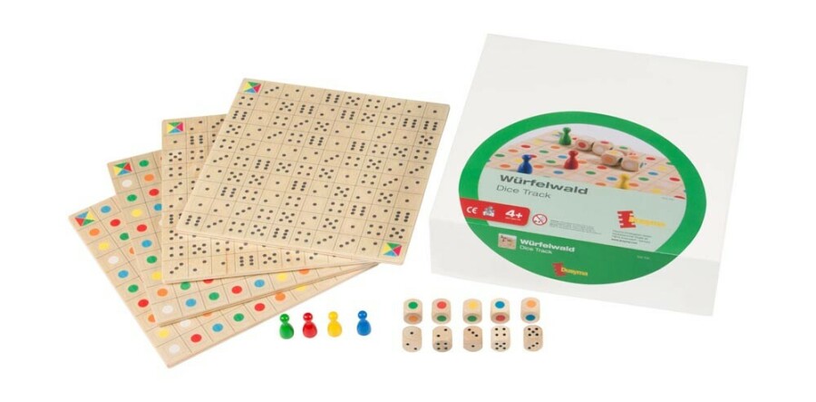 Een slim dobbelspel waarin je routes legt door een bos van stenen. Leg dobbelstenen horizontaal, verticaal of diagonaal en ruil de pion aan het einde. Borden kunnen los of tot één groot veld. Met kleurdobbelstenen al vanaf 4 jaar.