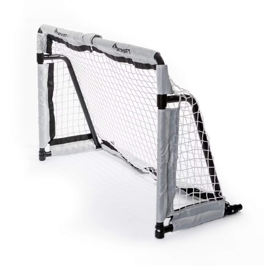 Met één handgreep zijn de poten van het doel stevig verankerd met een klein metalen pin – veilig en stabiel. Deze pin blijft altijd aan het doel bevestigd, zodat je hem nooit kwijtraakt. Heb je de ruimte even voor iets anders nodig? Dan klap je het doel razendsnel in en berg je het ruimtebesparend op.