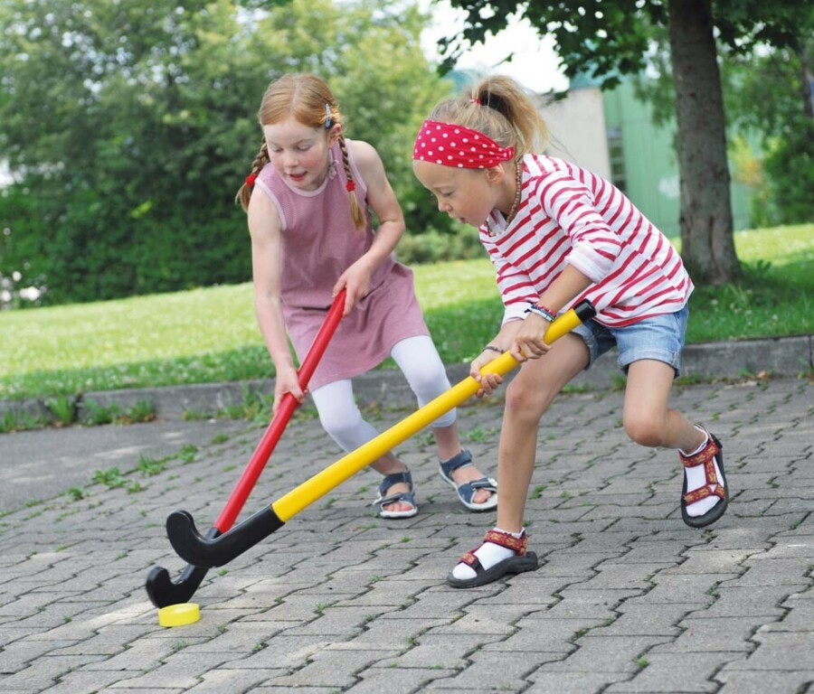 Teamspel voor gymzaal en schoolplein, binnen én buiten. De set bevat twaalf hockeysticks en drie ballen voor direct starten. Kleuren helpen teams vormen: zes rood en zes geel. Sticks van 90 centimeter ondersteunen basisvaardigheden en samenwerking. Robuust genoeg voor veel beweegmomenten in de klas.